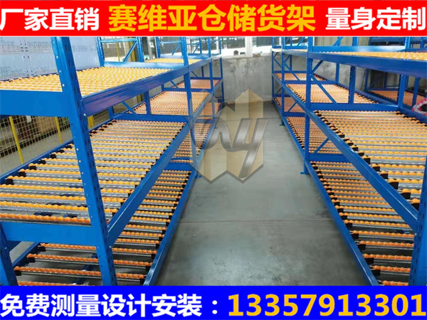 江蘇賽維亞定制的流利條式貨架又稱滑移式貨架